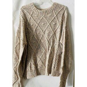 Womens XL Christmas Sweater Cable Knit Blush Pink Neutral Sz 16 18 Time And Tru