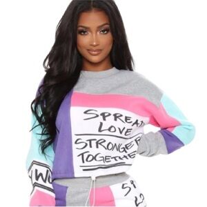 Women's XL Fashion Nova Written With Love Sweatshirt Color Block Drawstring