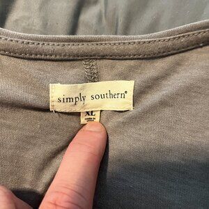 Women's XL Grey Button Shirt. It is a little oversized fit, great pre-owned condition. Very lightweight shirt. Simply Southern brand, 75% cotton & 25% polyester.