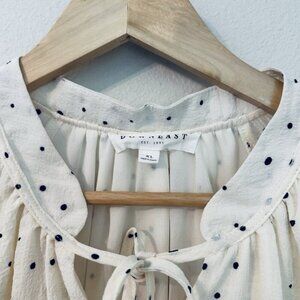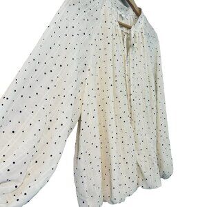 Women's XL Ivory Polka dot Relaxed Ballon Sleeve Soft Flowy Cottage Chic Blouse