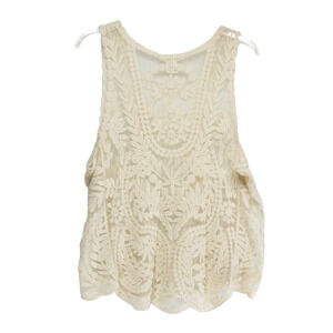 Women's XL Lace Tank SAY WHAT Y2K Boho Ivory Cotton Blend Blouse Beach Cover Up