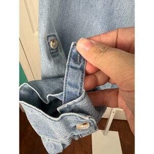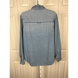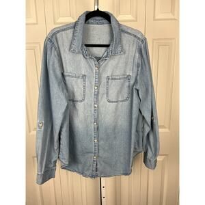 Women's XL Light Wash Denim Jean Blouse Top Roll Tab Sleeves Classic Staple