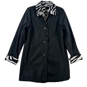 Elevate your wardrobe with this vintage overcoat, a timeless statement piece that combines glam and sophistication. Crafted from high-quality fabric, this reversible coat features a bold zebra animal print on one side and a classic black reverse, offering versatile styling options. Perfect for casual outings or making a statement at social gatherings, this long-sleeve coat in size XL ensures you stand out with its unique design. Condition as seen in photos. Most items are pre-loved and sold as is. My home is smoke and pet free, but most of my items have had lives before me.
