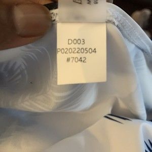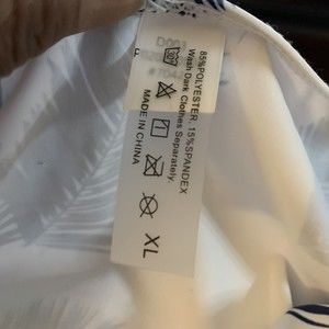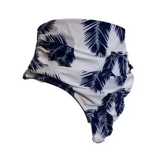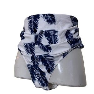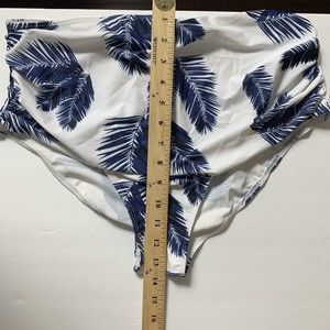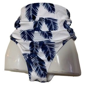 Women's XL White & Navy Blue Palm Print Swimwear Bikini Bottoms, High Rise Brief with Figure Flattering Side Shirring That Smooths and Slims. NWOT.