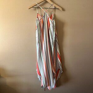 Women's XS Bar III Asymmetric Hem Striped Maxi V neck Summer Lightweight