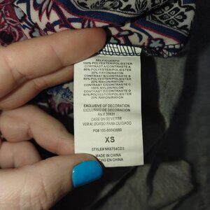 Women's XS Boho Patchwork Blue Print Lace Back Raglan Top 3/4 Sleeve Blouse