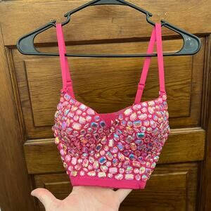 Women's XS Bustier Crop Corset Top Push up Rhinestone Detachable Straps