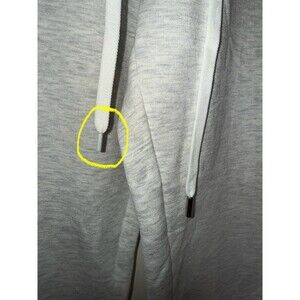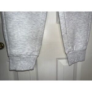 Size XS , has bell-style sleeves, zippered detail at the bottom of the long sleeve , and the jogger style pants with drawstring. *** please see pics , one of the strings to the drawstring on the pants is missing the little end piece. Other than that the set is perfect !