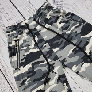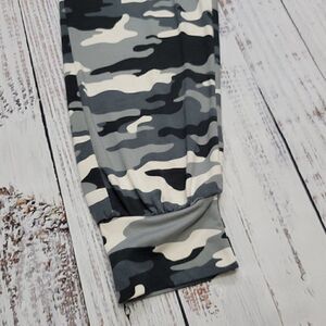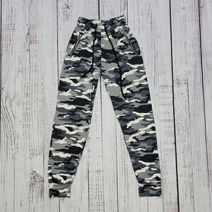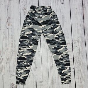Item: Women's XS Camo Athleisure Casual Comfy Buttery Soft Cuffed Pants. These pants are sooo soft! Buttery soft material. I cut the tag out so the brand and size are unknown but measurements are below. Listed as a size XS. Draw string is real so these can adjust to a smaller waist size. Plus, zipper pockets are real!! Black, grey and white in color.