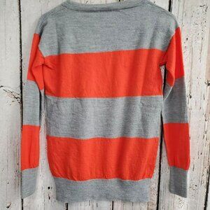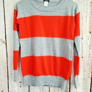 Women's XS J.Crew Saturday Sweater Merino Wool Gray Orange Striped Pullover EUC