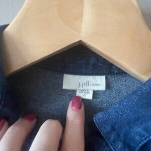 Tags: J.jill, denim, roll tab sleeves, stretch, blue jean, dress, collared, buttons, pockets, long sleeves, soft, bust darts, casual, date night, day outings, vacation, summer, winter, spring, fall, concert wear, Festival, parties, errands, coffee date, get-togethers, bbq, night out, rooftop, date dress, 3/4 sleeve, casual, business casual, career, professional, business attire, interview, successful, powerful, business trips, pullover, preppy, shirt dress