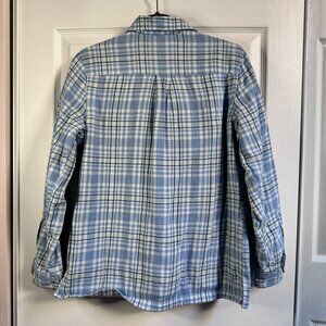 Women's XS LL Bean Light Blue Plaid Gray Fleece Lined Cotton Flannel Button Up