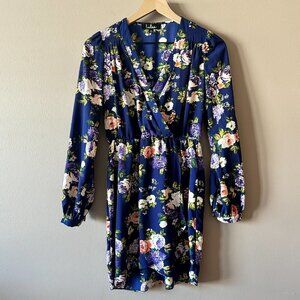 Women's XS Lulus That's a Wrap Navy Blue Floral Print Dress Long Sleeve