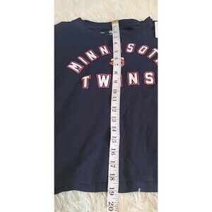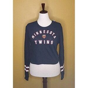 Women's XS Minnesota Twins Campus Lifestyle Long Sleeved Tee Shirt. 100 percent Cotton. An officially licensed MLB product, this shirt is designed for die-hard Twins supporters who want to showcase their team spirit with style. The blue hue is synonymous with the team's colors, and the shirt is tailored to fit comfortably, making it perfect for game days or casual outings. The white and red sleeve bands add a cute touch to the top.This shirt features the Minnesota Twins team name and logo prominently displayed, ensuring that your allegiance is clear to all. The long-sleeved design provides versatility for different weather conditions, while the quality fabric ensures durability and long-lasting wear. Whether you're at the stadium or on the streets, this tee shirt is a subtle yet stylish way to support your favorite MLB team.