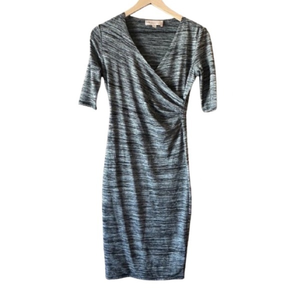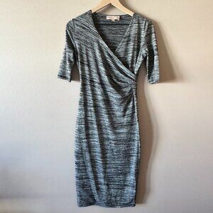 Women's XS Philosophy Half Sleeve Cross Bodice Dress Heathered Black Gray Stripe