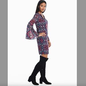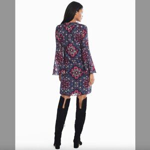 White House Black Market Long Bell Sleeve Medallion Print Shift Dress