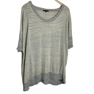 Womens XS/S Lafayette148 Oversized Gray Stripe Linen Blend Short Sleeve Knit Top