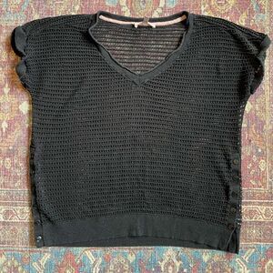 Womens XS Victorias Secret Black Knit Short Sleeve Top- Coverup/side buttons
