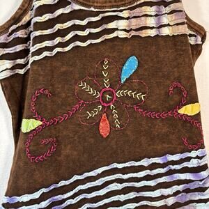 Womens XXL 100% Cotton Patchwork Made In Nepal Tank Earthy Boho Embroidered