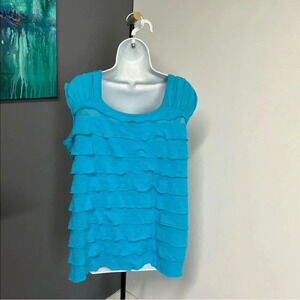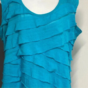 Rafaella Women’s XXL Blue Mesh & Ruffle Tank Top Feminine Casual Travel