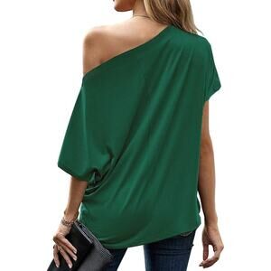 Women’s XXL Green Off Shoulder Short Sleeve Front Twist Knot Top Blouse