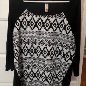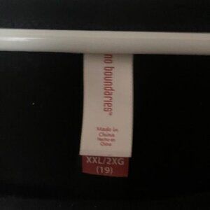 Womens XXL No Boundaries Shirt. Beautiful, stretchy, like new. Black and white. Machine wash / tumble dry. Size XXL / 2XG (19). Very pretty and stretchy, comfy. Back is solid black, no print. Very nice and contrasting.