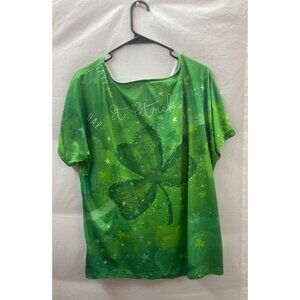 Women's XXL St. Patrick's Day Short Sleeve Green Shamrock T-Shirt.