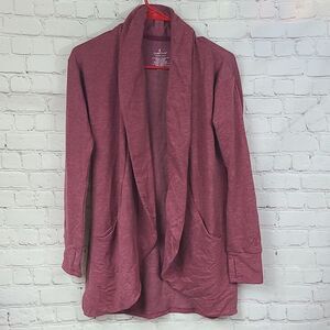 Womens XXS/XS Cuddl Duds Comfortwear Soft Knit Wrap Cranberry Thumbhole Cardigan