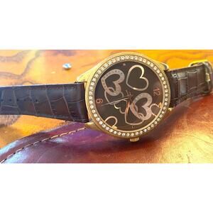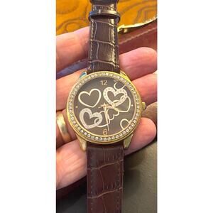 Women's Xhiliration Watch, Gold Tone with Rhinestone Bezel, Brown Band