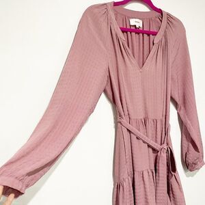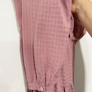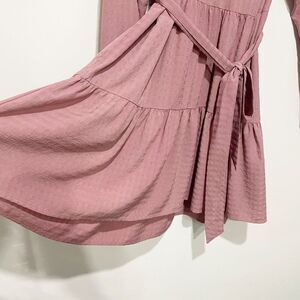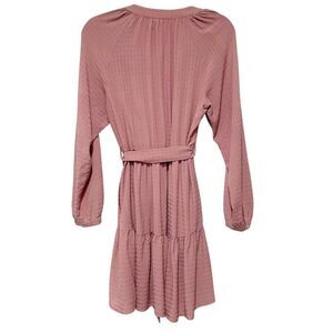 Women's XiRENA Pale Pink Balloon Sleeve V Neck Short Tiered Belted Dress S Boho