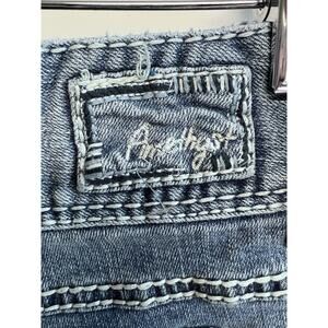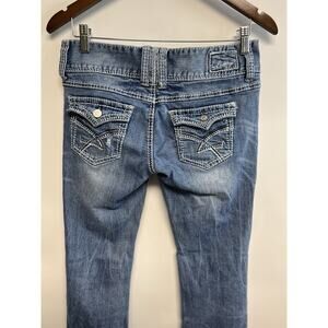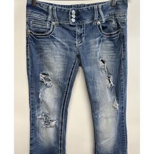 Women’s Y2K 90s Low rise Flare Boot Jeans Sz 9 Distressed Holes 2000s 32x32