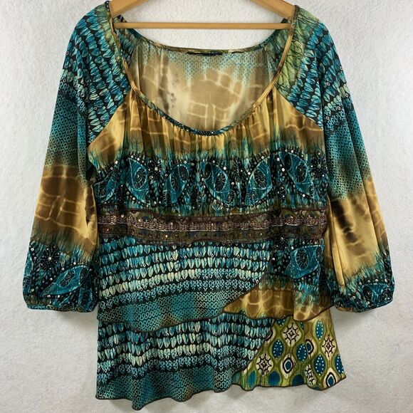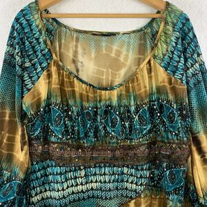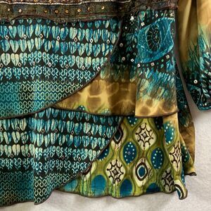 Womens Y2K Babydoll Top Sz XL Fairy Grunge Tiered Ruffle Lace Sequin Boho Office