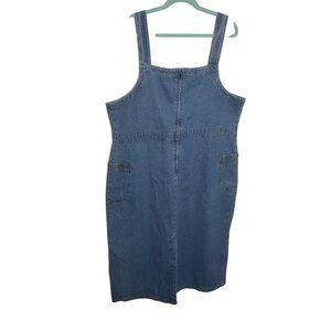 Women’s Y2K Cottagecore Denim Overall Dress Floral Embroidered Modest Pockets 1X #plussize #grandmacore #cottagecore #momcore #modest #denim