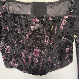 Womens Fairy Grunge Corset Top Floral XS Velvet Burnout Vamp Whimsigoth Long Sleeves
