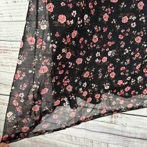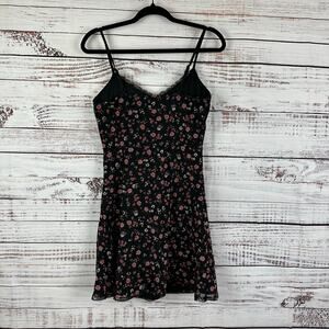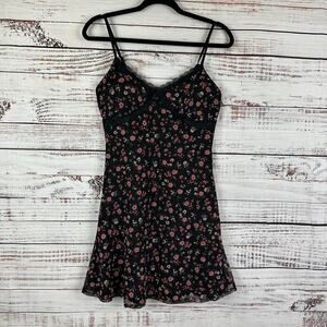 Womens Y2K No Boundaries Black Ditsy Floral Mesh Lace Cami Mini Dress Fairy Sz M