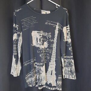 Women's Y2K Round Neck Long Sleeve Paris Themed Top Size Large Vintage Clothing
