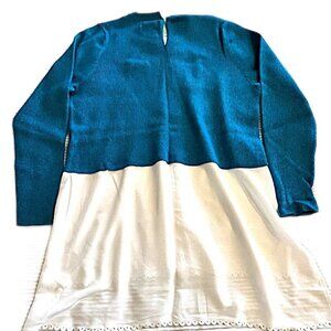 Women's Y2K Sparkling Teal Blue & Ivory tunic hi/low sweater shirt combo - Large
