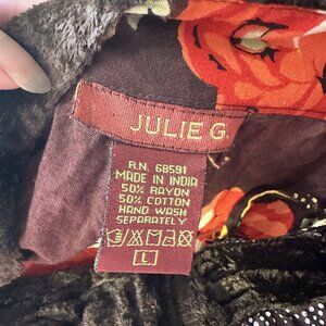 Womens Y2K Velvet Maxi Skirt Large Brown Floral Full Julie G Festival Paneled