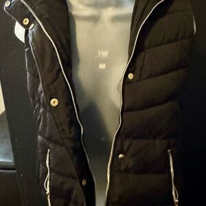Stay warm and stylish with this black puffer vest featuring a cozy removable faux fur hood. The hood is velvet lining material. The vest itself has the same lining. The side panels are stretchy for some give making the vest very comfortable. Perfect for layering in cooler weather. Women’s sized medium. Never worn. No holes. I did cut the tag. It’s a habit of mine 🙄 Smoke free home.