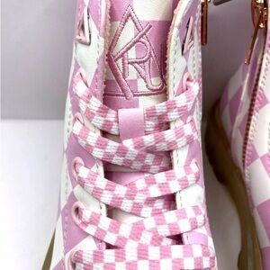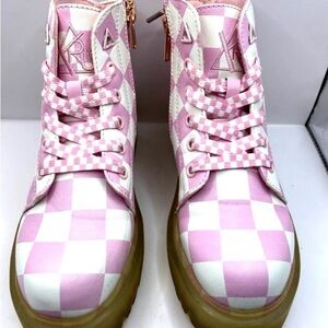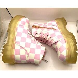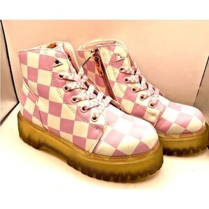 Womens YRU Sz 6 Slayr Combat Boots Pink White Check Military Pink Goth Platforms