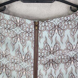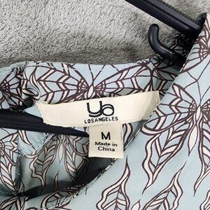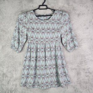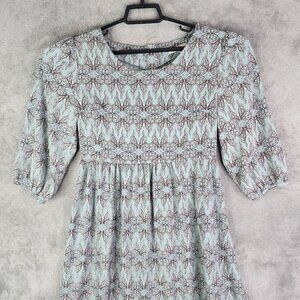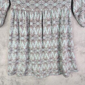 Women's Ya Los Angeles Boho Blue & Brown Floral Print Dress 3/4 Sleeves Size M