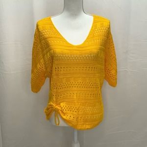 Women's Yellow 3/4 Sleeve Scoop-Neck Sweater, Size S/M