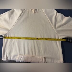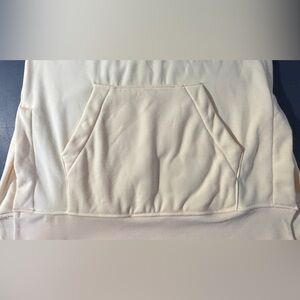 Comfortable cozy warm long soft yellow fleece hoodie with front pocket and side vents. Perfect for lounging or casual outings.