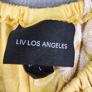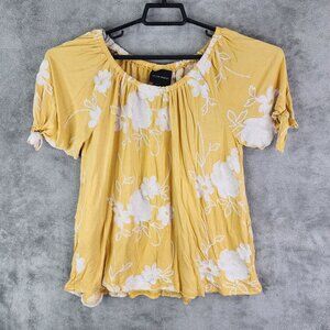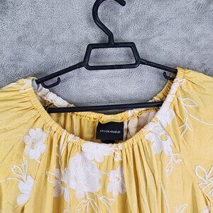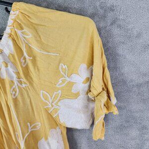 Women's Yellow Floral Liv Los Angeles Blouse Top Embroidered Short Sleeve Size L