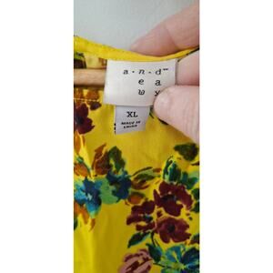 Women's Yellow Floral Vintage Inspired Midi Flowy Dress XL