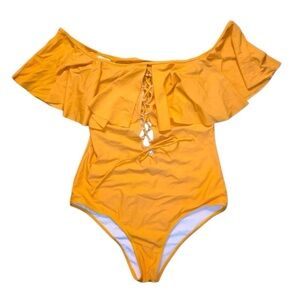 Women's Yellow Lace Up One-Piece Swimsuit |Bodysuit |Size XXL beach boho