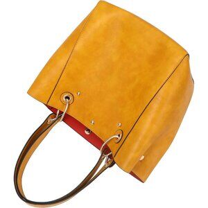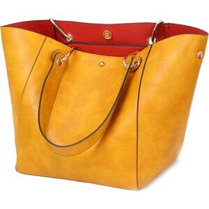 ⚡ Women's Yellow Large Leather Big Bucket Crossbody Travel Tote Bag