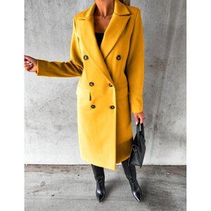 Womens Yellow Long Wool Coat Double Breasted Trench Coat Fall Winter Clothes