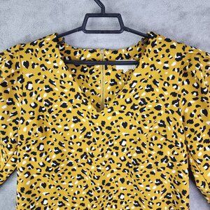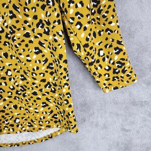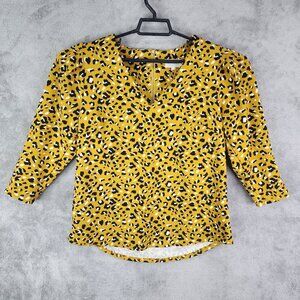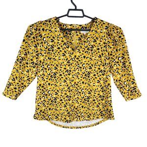 Women's Yellow Melloday Leopard Print Blouse Top V-Neck 3/4 Sleeve Size M