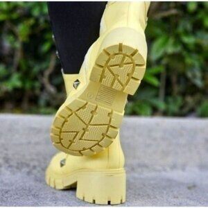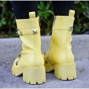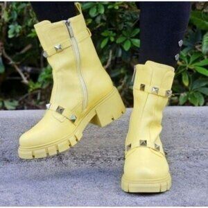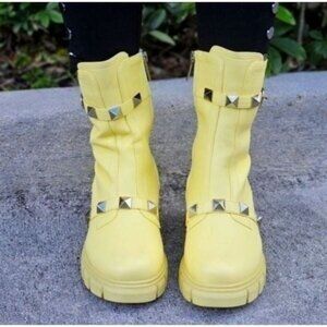 Women's Yellow Pyramid Stud Ankle Combat Boot